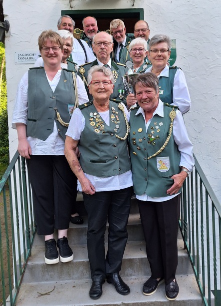 Zu jedem Schützenfest gehören auch Ehrungen für besondere Verdienste. Für 60 Jahre Mitgliedschaft wurde Theo Ebbeskotte geehrt, für 50 Jahre Mitgliedschaft Manfred Schmidt und Dieter Ragge und für 25 Jahre Mitgliedschaft Markus Werries. Die Pro Patria Nadel vom Bund der Osnabrücker Schützen erhielt Julia Husmann, die silberne Verdienstnadel erhielten Claudia Langkamp und Kornelia Brand und die goldene Verdienstnadel ging an Birgit Werries.